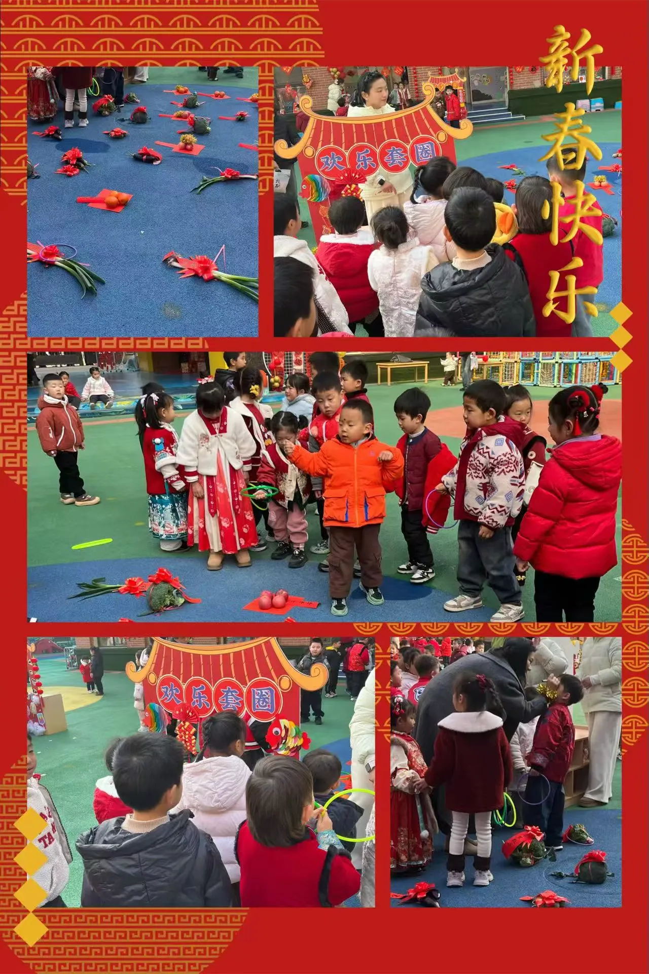套菜游戏闹腾腾,福气祝福全登门。攥紧圈圈,瞄准鲜嫩蔬菜,一抛一落皆是欢喜。套中一份好菜,收下聪明伶俐的成长愿,抱回恭喜发财的新年盼。